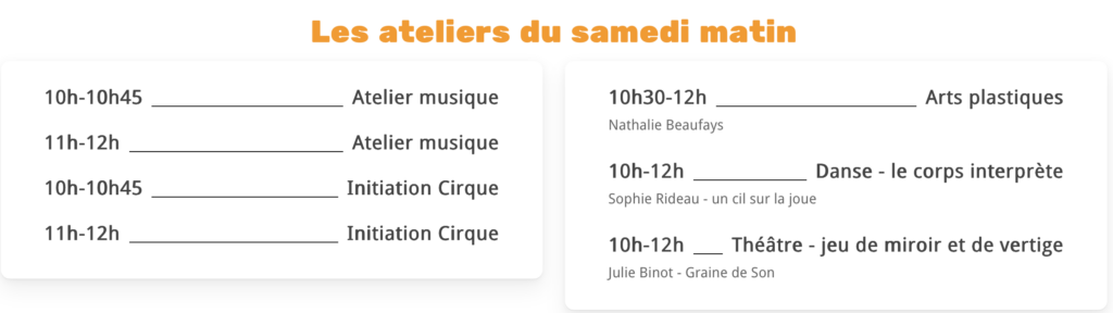 Infos et inscriptions aux ateliers sur le site de la compagnie.