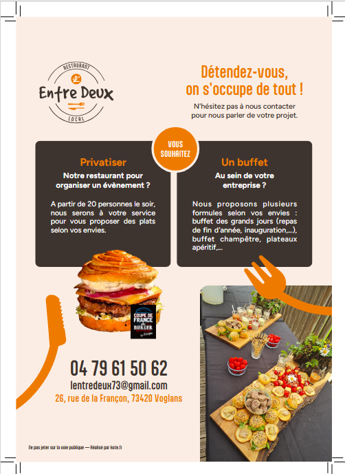 Après l’ouverture de notre restaurant à Voglans en Janvier, nous avons décidé de reprendre du service en proposant des prestations traiteurs.